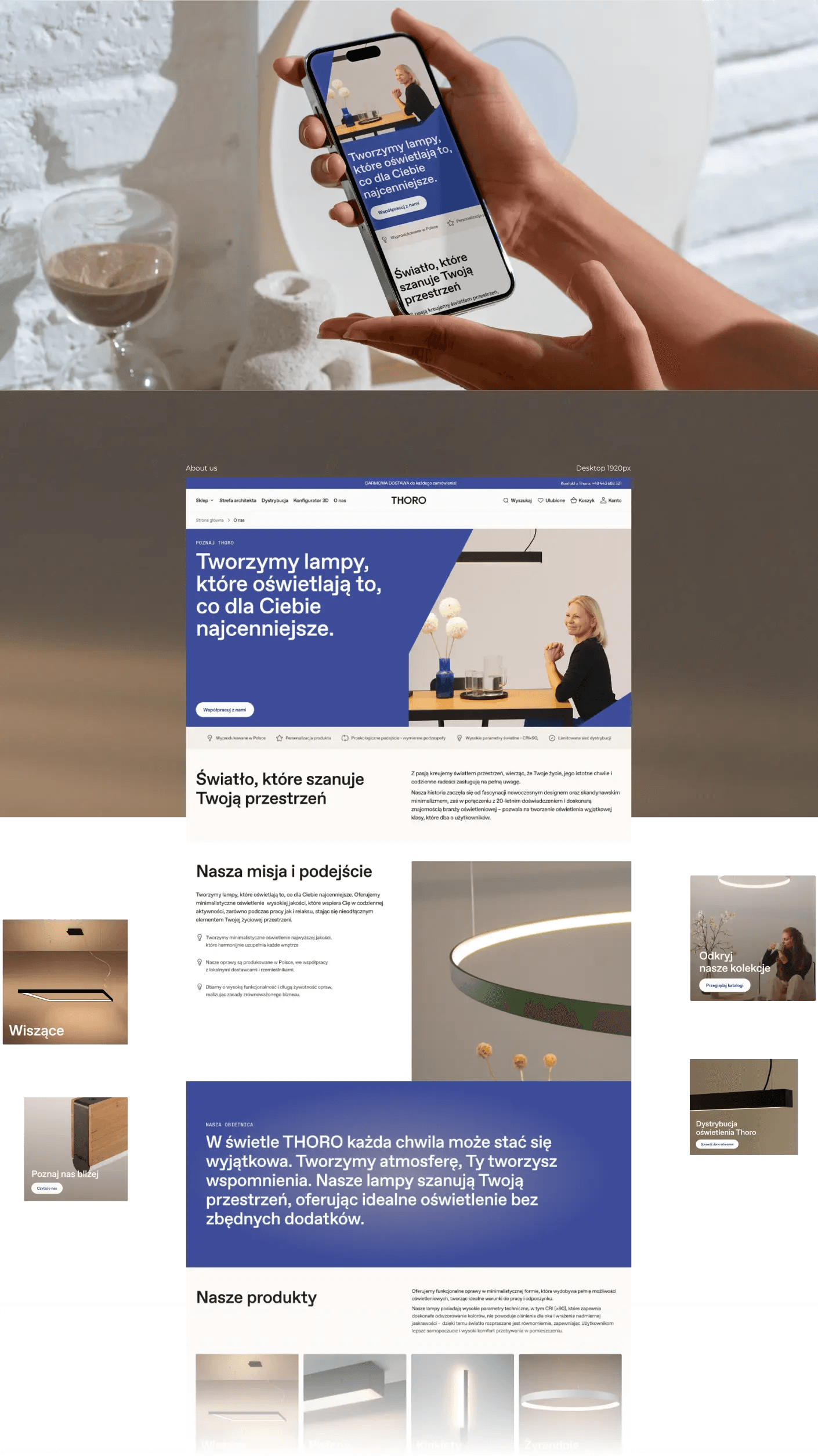 Thoro jest producentem oświetlenia, które łączy minimalistyczny design z najwyższą jakością wykonania. Naszym zadaniem było wdrożenie redesignu sklepu internetowego Prestashop, w oparciu o przekazany projekt UX/UI i istniejącą infrastrukturę sklepu.